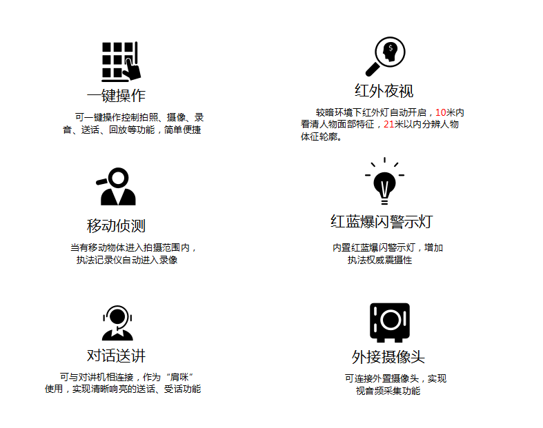 海洋之神hy590DSJ-200F 执法仪(法院/政府/城管)拍摄像素高达5000万,广角镜头137,拍摄画面精细而全面,大容量电池支持陆续在工作12小时不断电